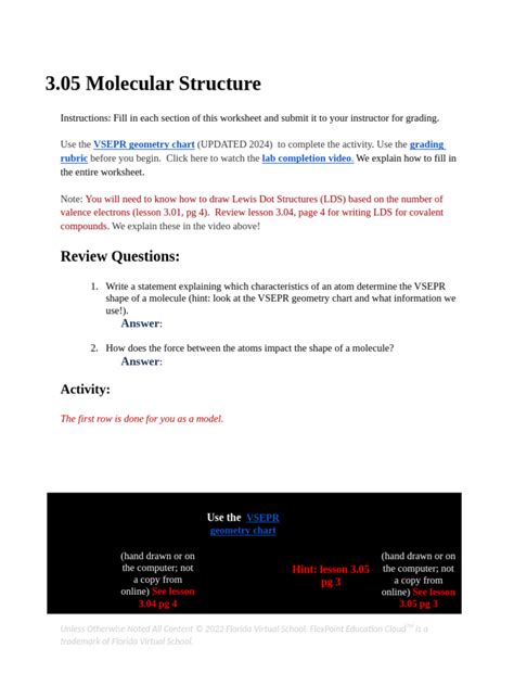 Fill in each section of this worksheet and submit it to your instructor. Web 3.05 molecular structure instructions: Fill in each section of this worksheet and submit it to your instructor for grading. Web 3.05 molecular structure instructions: