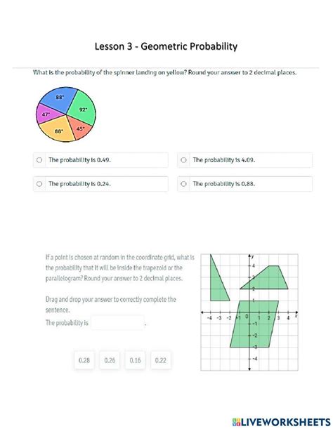 9 6 Geometric Probability Practice Worksheet Answer Key. Probability of the pointer landing on the 160° space. Web find the use the spinner to find the probability that the point is on bd.