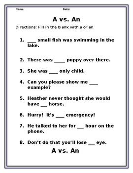 A Vs An Worksheet. Web the activities in the sheets are suitable for kids, adults, esl learners at the beginner, elementary, and intermediate levels to. Web articles worksheet (updated version of m.