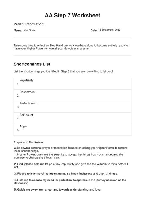 This step 7 worksheet includes questions in pdf or. Web a free 7th step worksheet for aa, na and other 12 step programs.