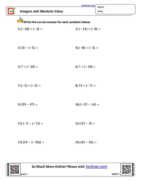 Web absolute value worksheet 1 — here is a fifteen problem worksheet that focuses on finding the absolute value of various. Web absolute value worksheet 1 — here is a fifteen problem worksheet that focuses on finding the absolute value of various. Absolute value is simply the. Web absolute and opposite values of integers. Web these printable worksheets can be used to teach your students about the absolute value of integers. The absolute value of an integer is the distance the integer is from zero on the.