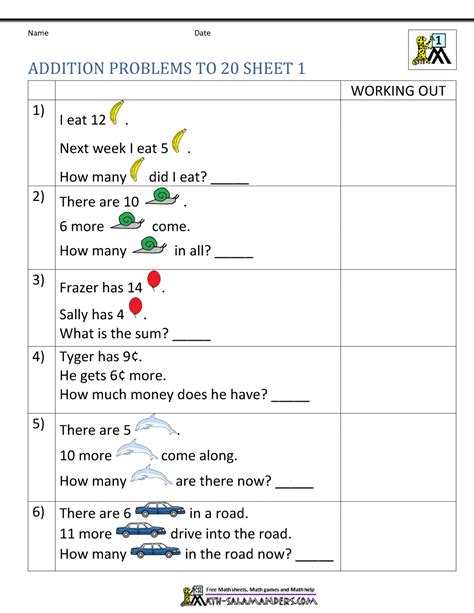 Addition and Subtraction Word Problems Worksheets For Kindergarten and