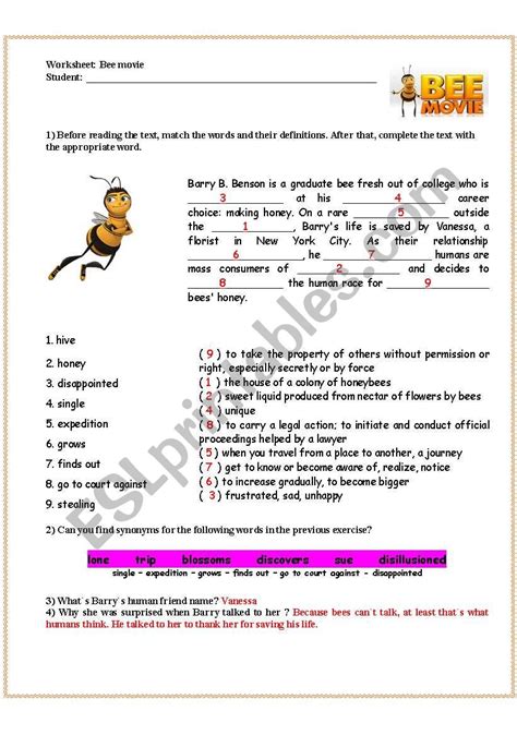 Bee Movie Worksheet Answer Key. Web this quick movie guide includes 20 questions in complete while watching the movie and an art your to finished after.