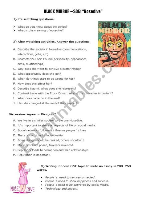 Black Mirror Worksheet. It also includes a viewing quiz and. Evil not part of a set dark controversial clumsy critical in a humorous way causing disagreement.