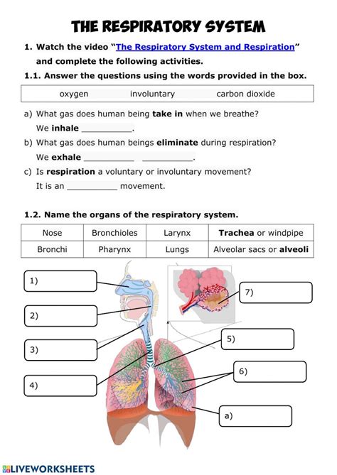 Breathing System Worksheet. For each diagram in the table, students should name the part of the respiratory system. With the activities in this teacher's guide, students will learn how the respiratory system works as well as what they can do to encourage good.