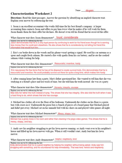 Characterization Worksheet 1 Answer Key Printable Word Searches