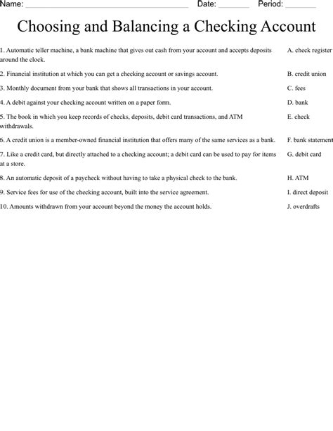 Choosing A Checking Account Worksheet