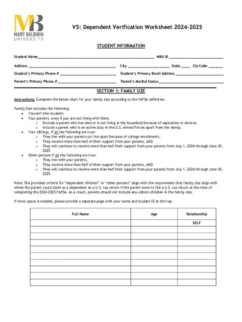 Dependent Verification Worksheet V1. The financial aid office at your college must compare information. The law says that before.