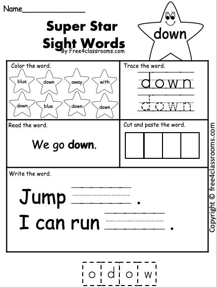 Web find fun and printable worksheets for teaching the sight word down to your students. Choose from four different types.