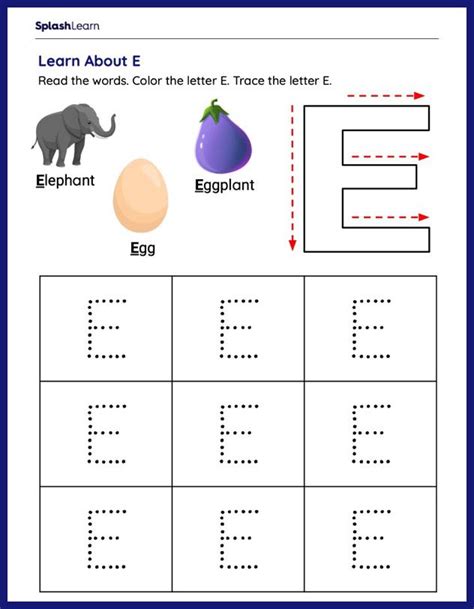 Letter Tracing E Worksheets for Kindergarteners Online SplashLearn