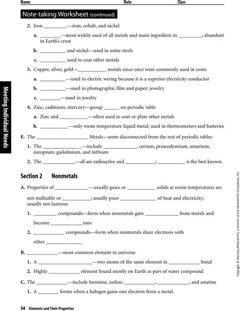 Elements And Their Properties Worksheet. Substances with only one type of atom. An element that is malleable, polishes to a.