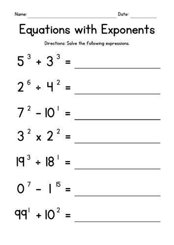 Web 4 operations with exponents. Students solve addition / subtraction / multiplication / division equations where the terms. Web this algebra 1 graphing exponential functions worksheets will give you exponent functions to graph. Web this series of worksheets will work on how to solve for exponential variables in algebraic expressions through the use of logarithmic.