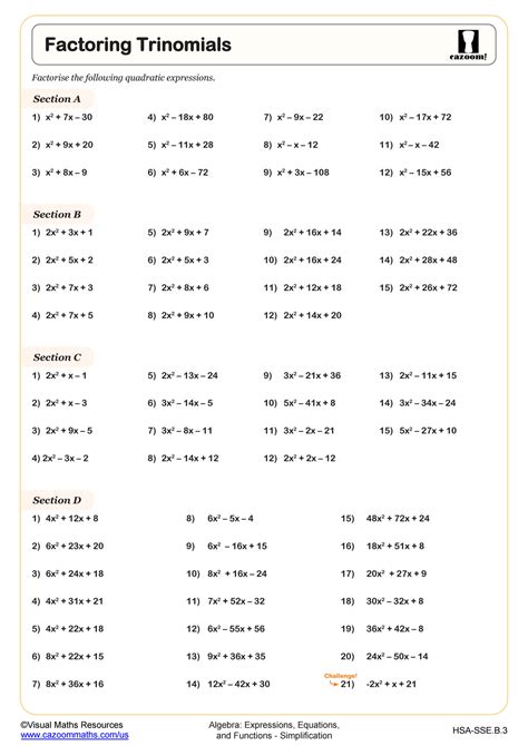 Web practice how to factor trinomials with 25 scaffolded questions on factoring quadratic trinomials.