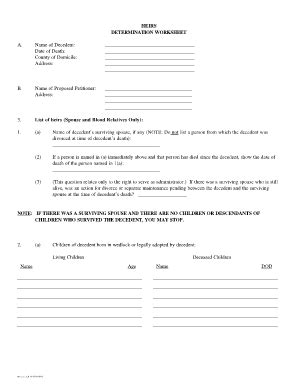 Web heirs determination worksheet inventory open safety deposit box personal status report petition for letters of.
