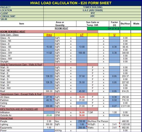 hvac load calculation worksheet