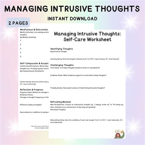 CBT Worksheets Intrusive Thoughts OCD Mental Health Etsy