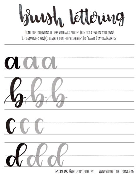 Brush Lettering Practice Sheets Lowercase Alphabet — White Brush
