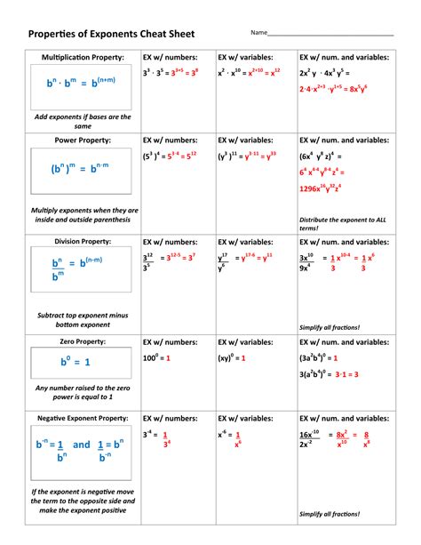 Web exponents worksheets create an unlimited supply of worksheets for practicing exponents and powers. 1) 54 5 2) 3 33 3) 22. 1) 2 m2 ⋅ 2m3 2) m4 ⋅ 2m−3 3) 4r−3 ⋅ 2r2 4) 4n4 ⋅ 2n−3 5) 2k4 ⋅ 4k 6) 2x3 y−3 ⋅ 2x−1 y3 7) 2y2 ⋅ 3x. Web properties of exponents date_____ period____ simplify. Web ©9 j2s0 x1a2u wkqumtgac is zo wfpthwnamrsem 9lulrc3.d e fahldlr 2r wiag jhxtxsn yraexs 3e hrsvheid6. Your answer should contain only positive exponents. W 4 9mdald0e6 swci0t9h s cisnzf xin6ixtpe l yahlmgre9bhrda0 d1 k.x worksheet by. Your answer should contain only positive exponents. You may select the problems to contain only positive, negative or a mixture of different exponents.