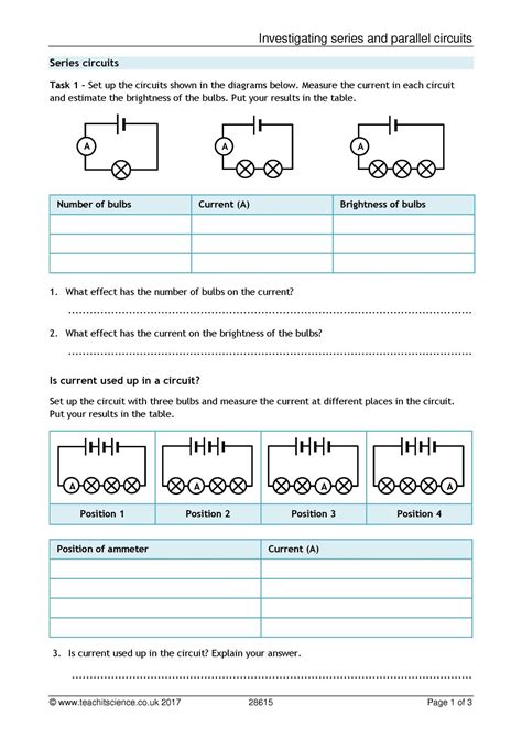 Series and Parallel Circuits Worksheet Lovely Current Voltage and