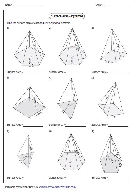 Surface Area Of Pyramid Worksheet With Answers Printable Word Searches