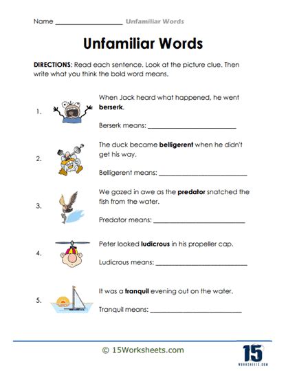 Unfamiliar Words Worksheet