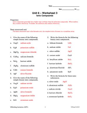 Unit 6 Worksheet 3 Ionic Compounds. Web ionic compounds containing polyatomic ions (worksheet 3) 4.8 (6 reviews) flashcards; Lithium bromide sodium iodide silver sulfide cesium oxide d.