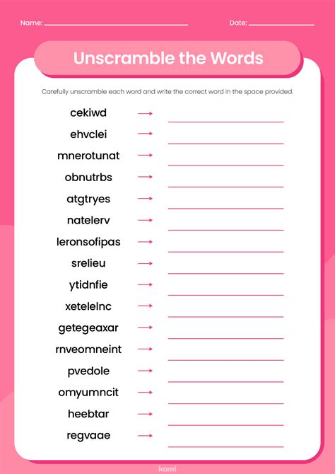 Unscramble the words worksheet