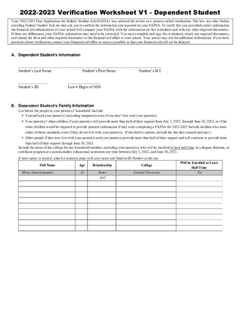 V1 Dependent Verification Worksheet. The law says that before. The financial aid office at your college must compare information.