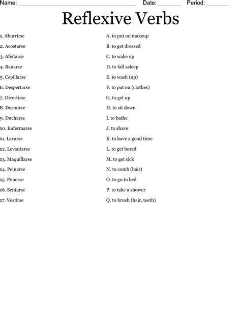 reflexive verb worksheet