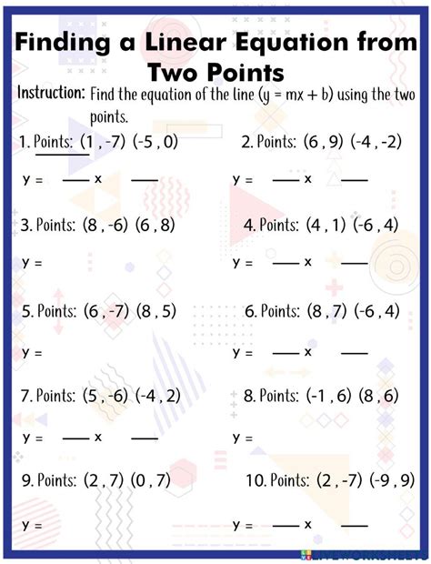 Writing Linear Equations Given Two Points Worksheet